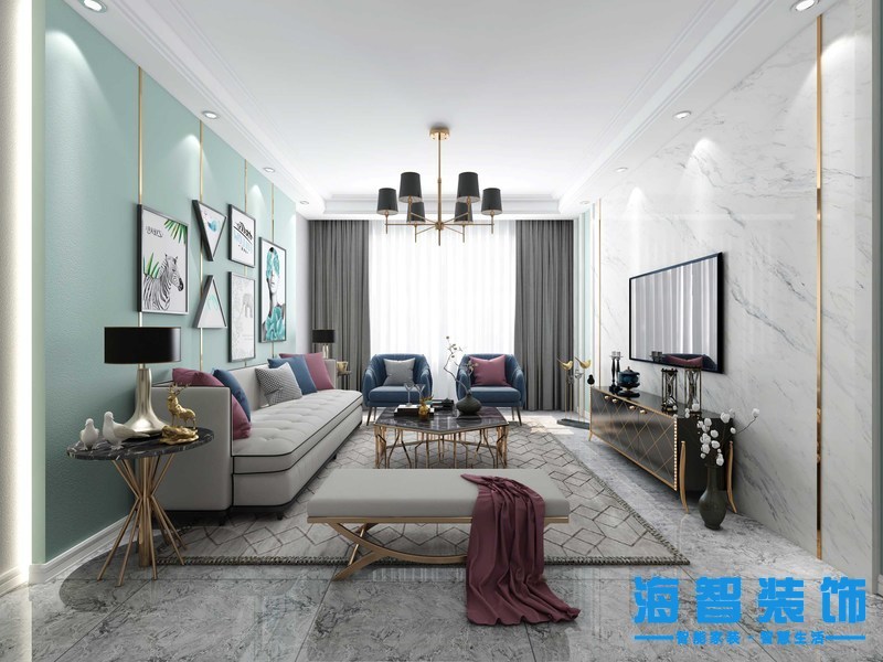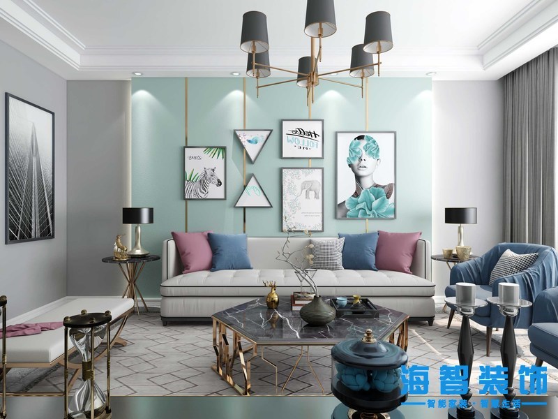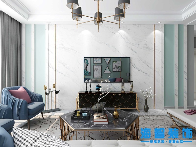 教育學(xué)院100平現(xiàn)代輕奢風(fēng)格裝修案例——沙發(fā)背景墻