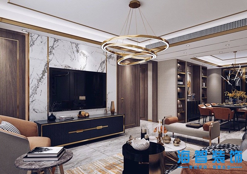 世界冠郡三室兩廳北歐輕奢風(fēng)格裝修效果圖——電視背景墻