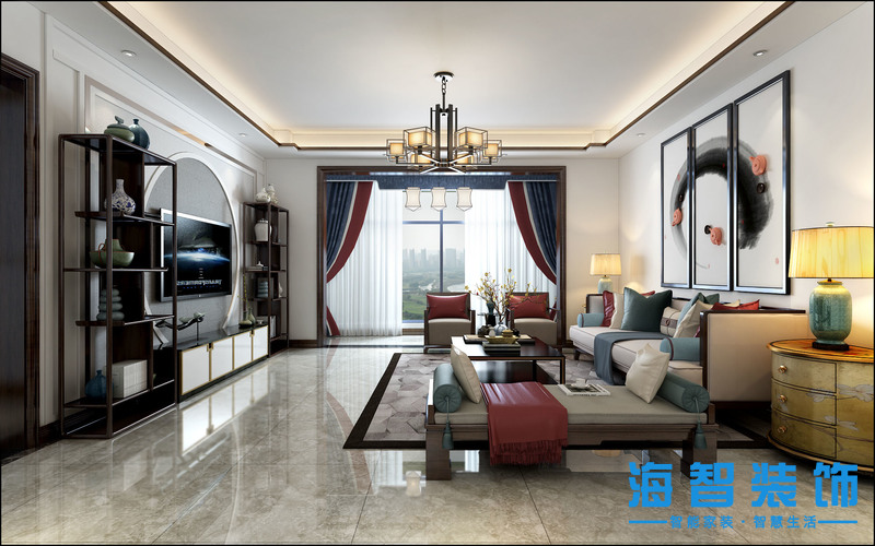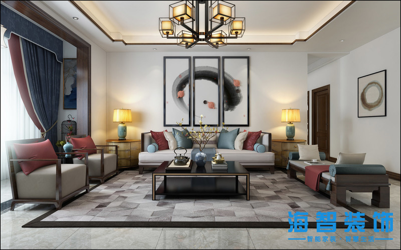 中泰雅居裝修效果圖新中式風(fēng)格設(shè)計(jì)案例——沙發(fā)背景墻