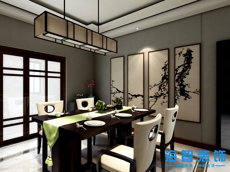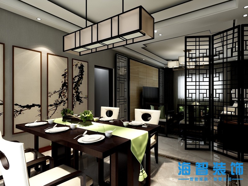 世界冠郡140平方三室兩廳新中式風格裝修效果圖
