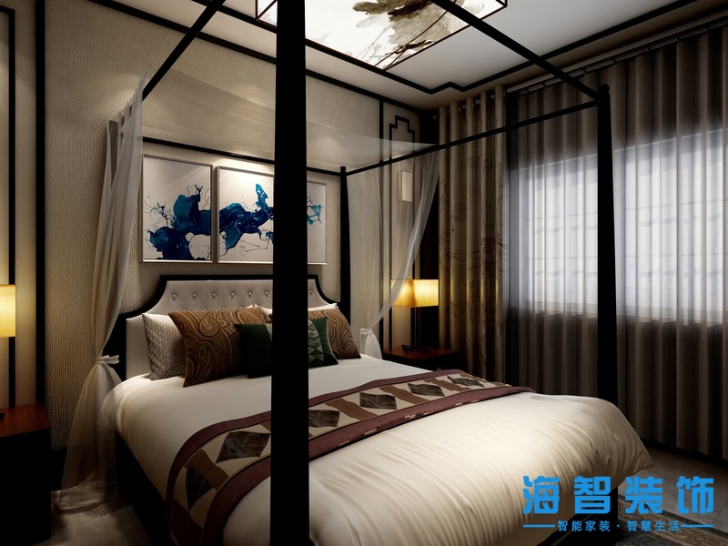 世界冠郡三室兩廳新中式風格裝修案例——臥室