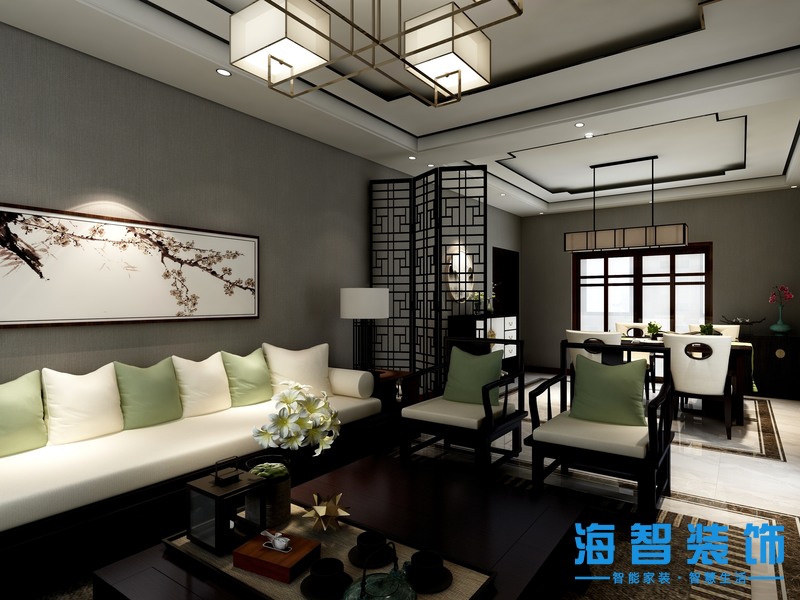 世界冠郡裝修效果圖新中式風格設計案例——沙發(fā)背景墻