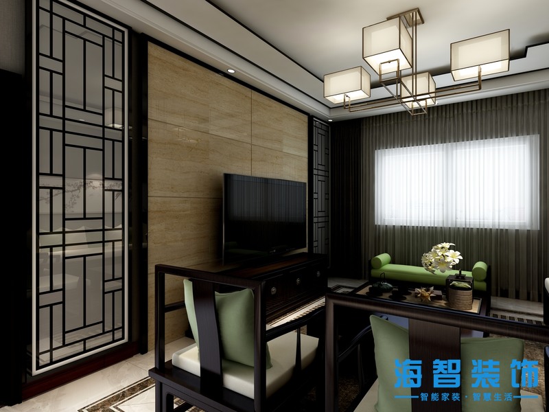 世界冠郡三室兩廳新中式風格裝修效果圖——電視背景墻