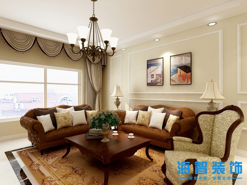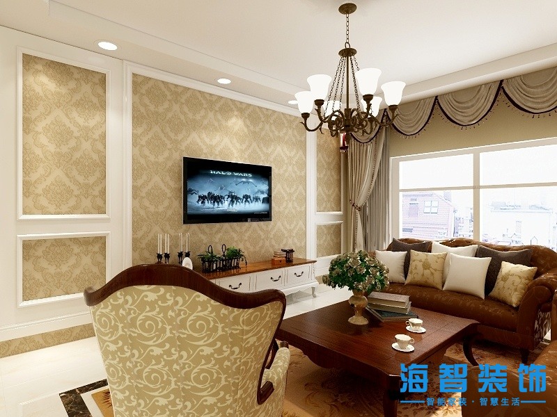 世界冠郡裝修效果圖美式風(fēng)格設(shè)計(jì)案例——沙發(fā)背景墻