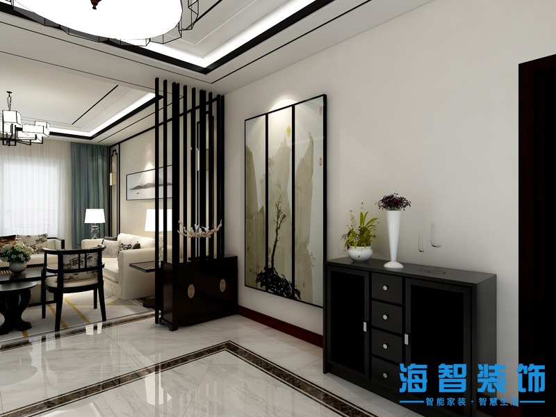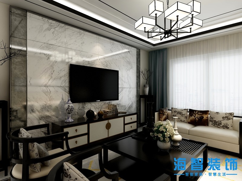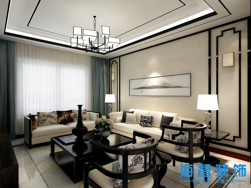 世界冠郡裝修效果圖新中式風(fēng)格設(shè)計案例——沙發(fā)背景墻