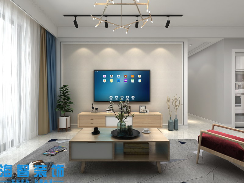 觀園路三室三廳現(xiàn)代風(fēng)格裝修方案——客廳