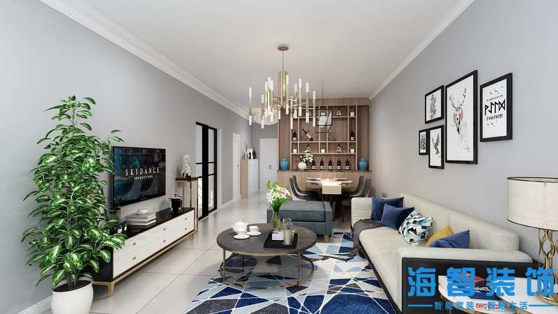烏魯木齊榮和城83㎡兩室兩廳裝修樣板間——客廳