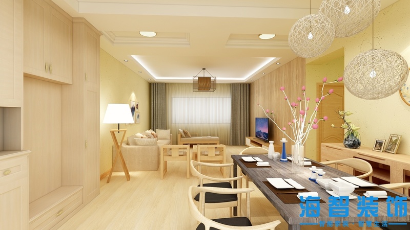 世界冠郡127平方三室兩廳原木風(fēng)格裝修效果圖