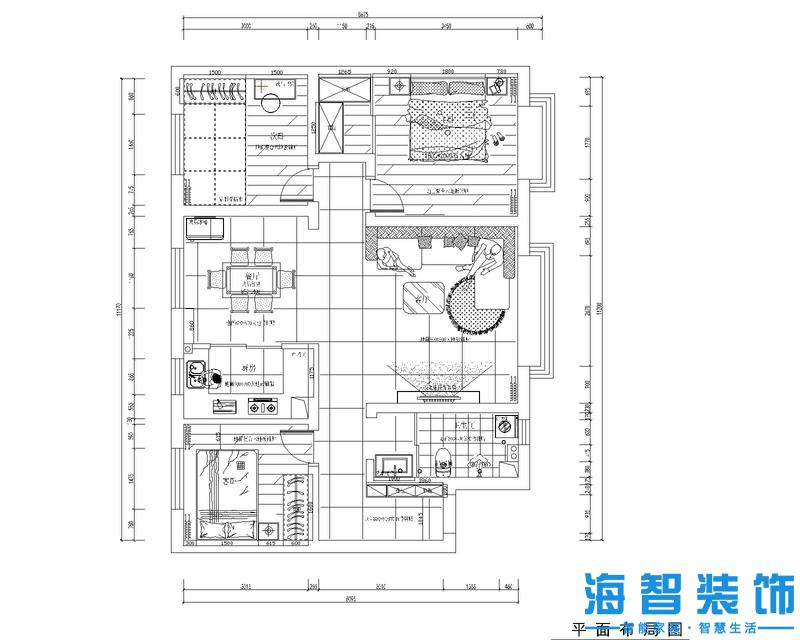 香緹美蒂三室兩廳簡約風格裝修案例——平面戶型圖
