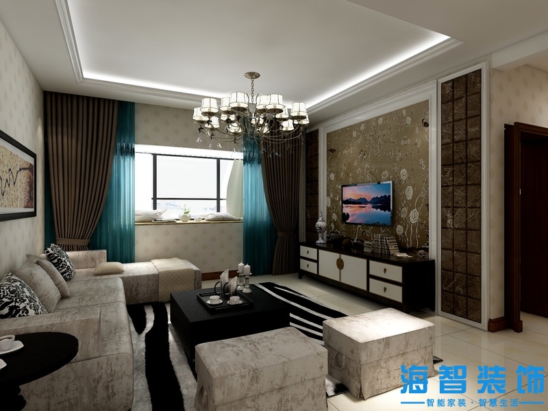 香緹美蒂三室兩廳簡約風格裝修效果圖——電視背景墻