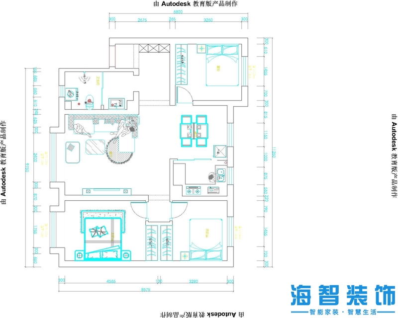 恒大綠洲三室兩廳北歐風格裝修效果圖——平面戶型圖