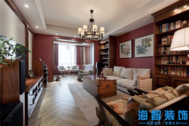 榮和城裝修效果圖美式風(fēng)格設(shè)計(jì)案例——沙發(fā)背景墻