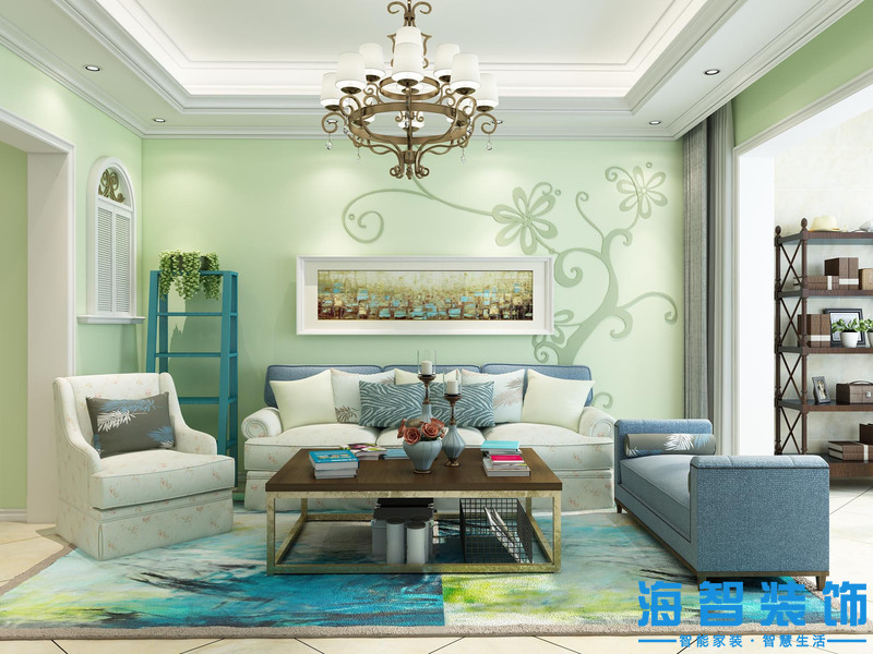 綠城翡翠園87平田園風(fēng)格裝修案例——客廳設(shè)計