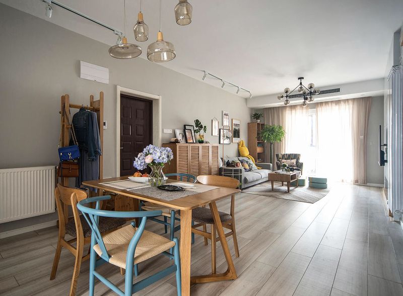 客廳的客廳地板窗為室內(nèi)引入了明亮的光線,襯托了自然的質(zhì)感、簡單的氛圍,為家庭交流提供了理想的場所。 把桌子放在l型沙發(fā)后面,描繪出整體的主次關(guān)系。